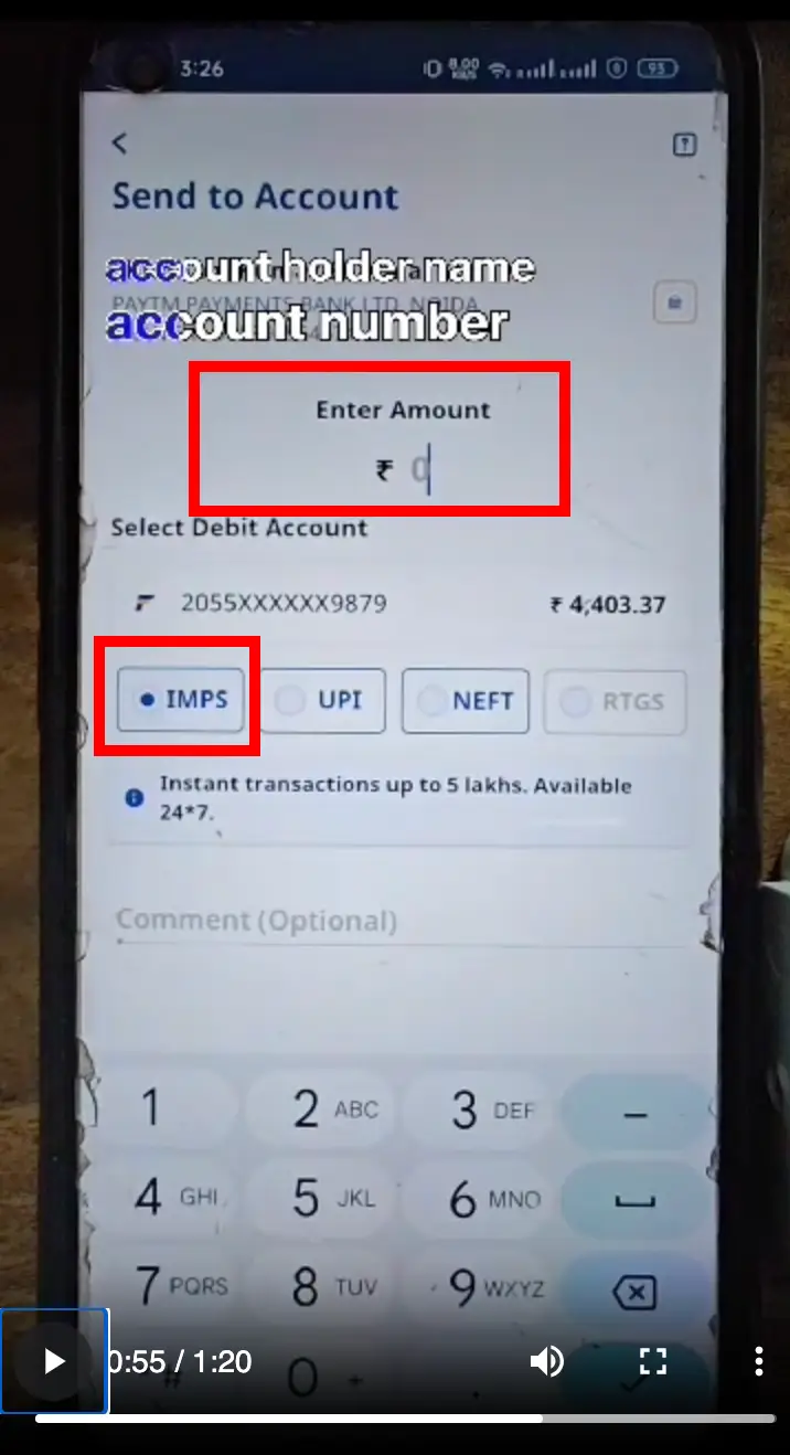Step 3: Enter Bank account and IFSC number and Receiver’s name.