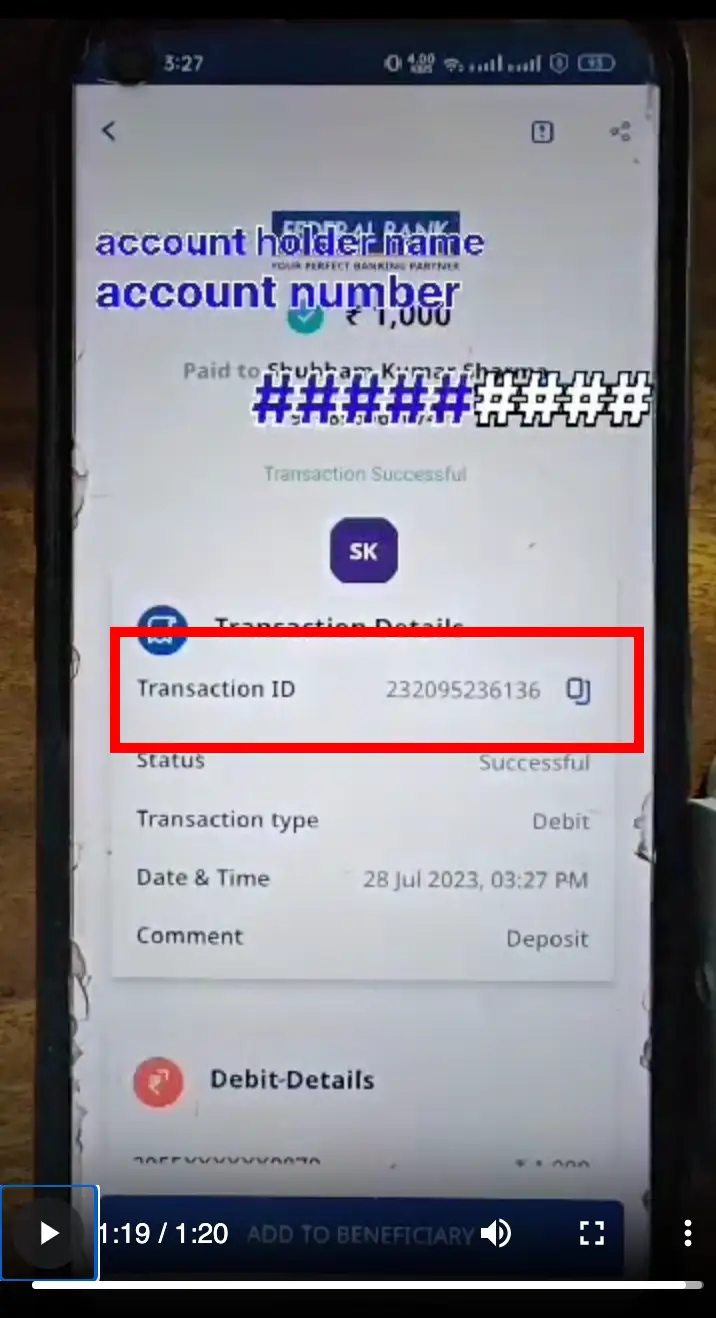 Step 6: Copy Transaction ID / UPI Ref. no. and now you can use this UTR on website or wherever needed.