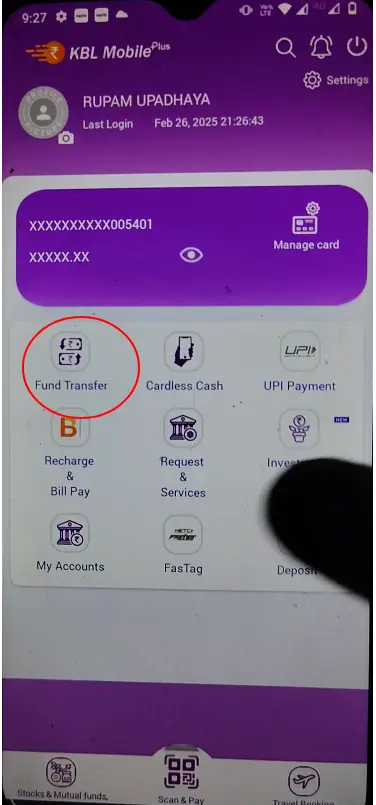 Open your Karnataka Bank app by unlocking it with pin or biometric.