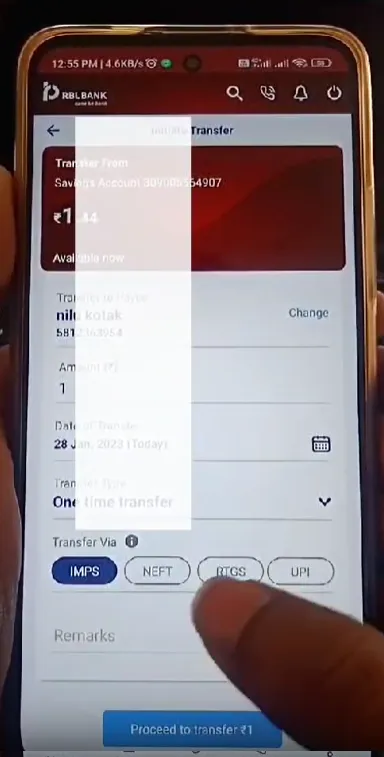 RBL Bank to Bank Transfer